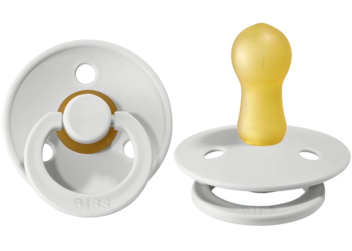 The BIBS pacifier has been a classic for moms and babies for over 30 years. Due to its naturally safe and durable rubber material, the BIBS pacifier has been trusted by moms worldwide for decades. Teach your baby to self-soothe with this pacifier that mimic's mom's breast in both comfort and feet. The BIBS pacifier is 100% free from BPA, PVC, and phthalates. Designed and manufactured in Denmark. Their classic appearance captures a look that’s both timeless and elegant. Available in a 2 pack in a variety of colors - collect them all to ensure your baby's look is coordinated!