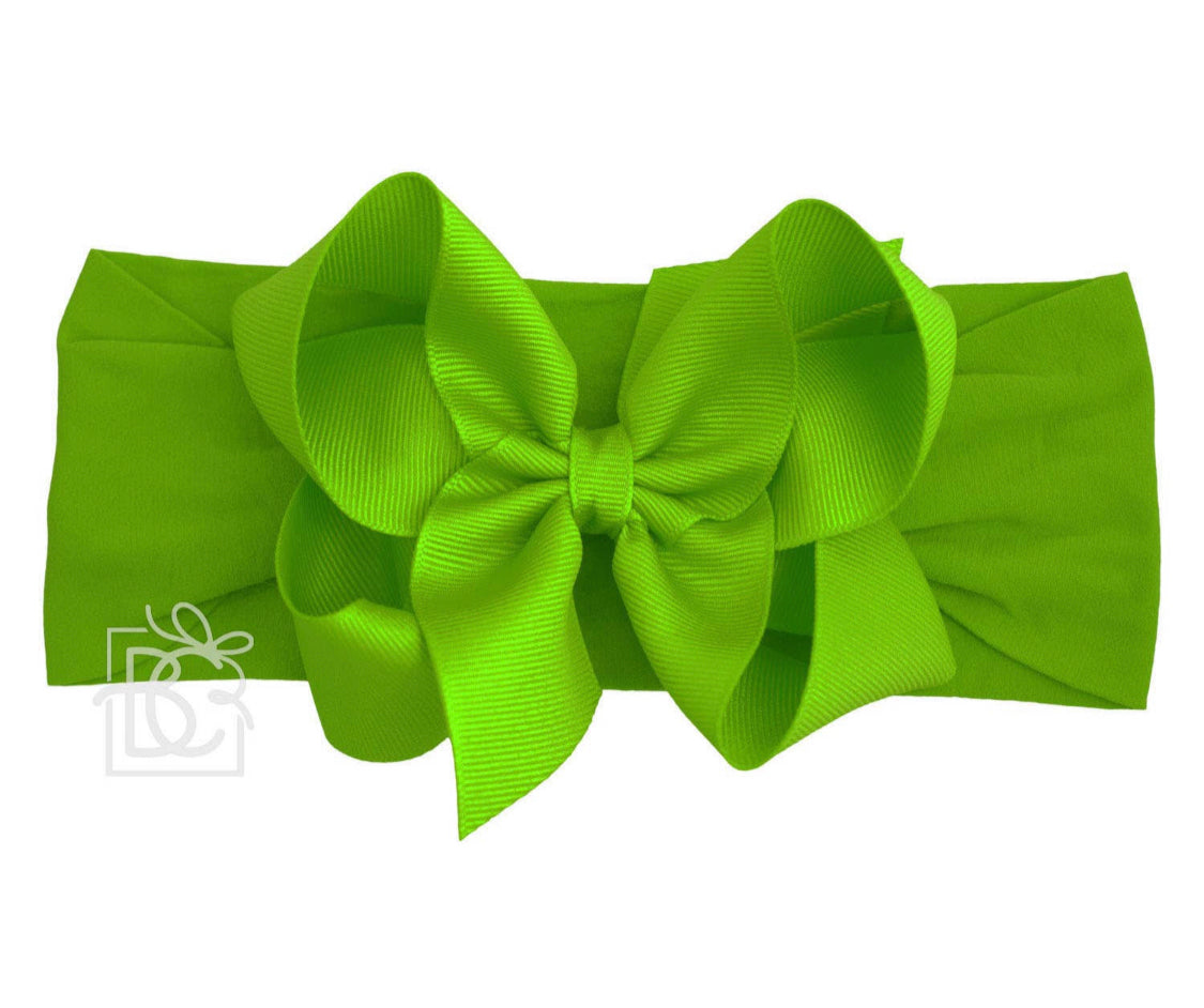 Wide pantyhose headband with large 4.5” Grosgain bow