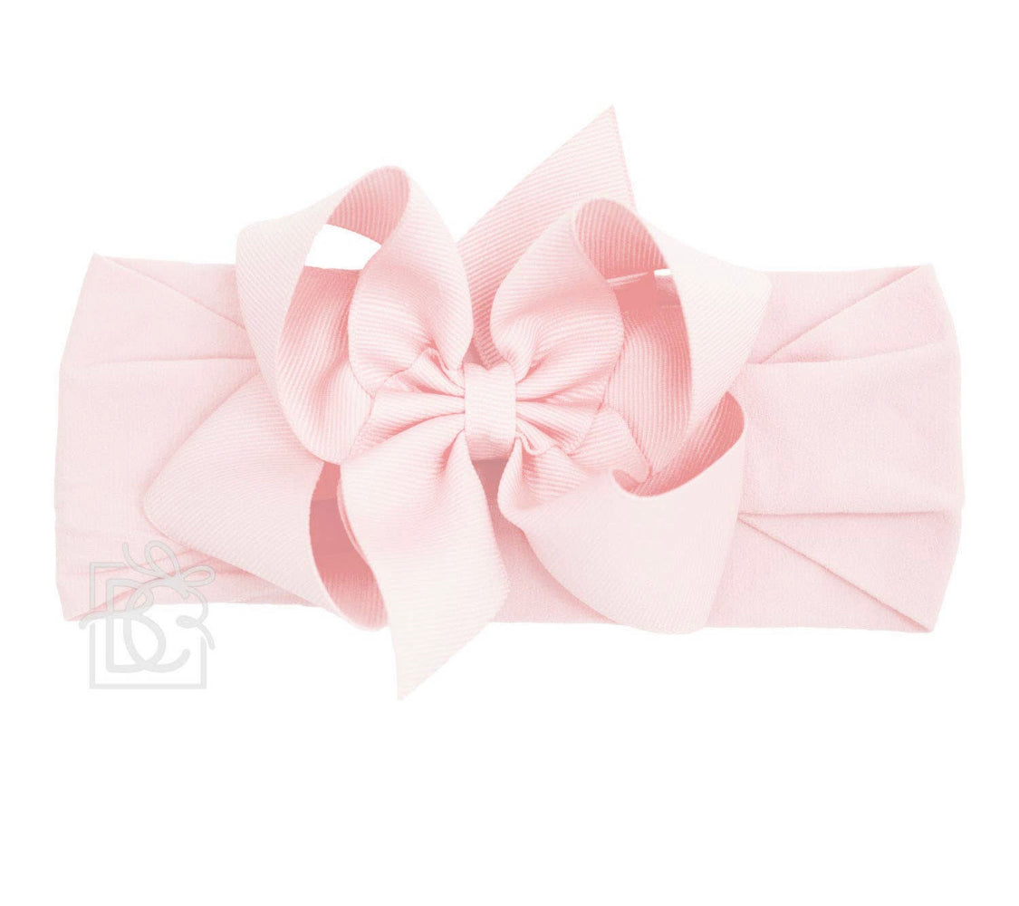 Wide pantyhose headband with large 4.5” Grosgain bow