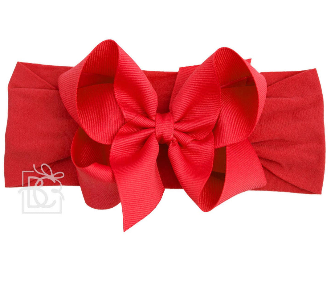 Wide pantyhose headband with large 4.5” Grosgain bow