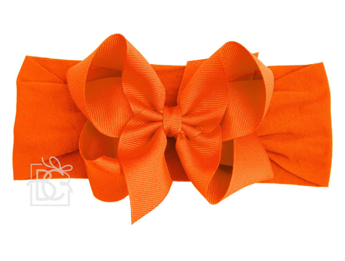 Wide pantyhose headband with large 4.5” Grosgain bow
