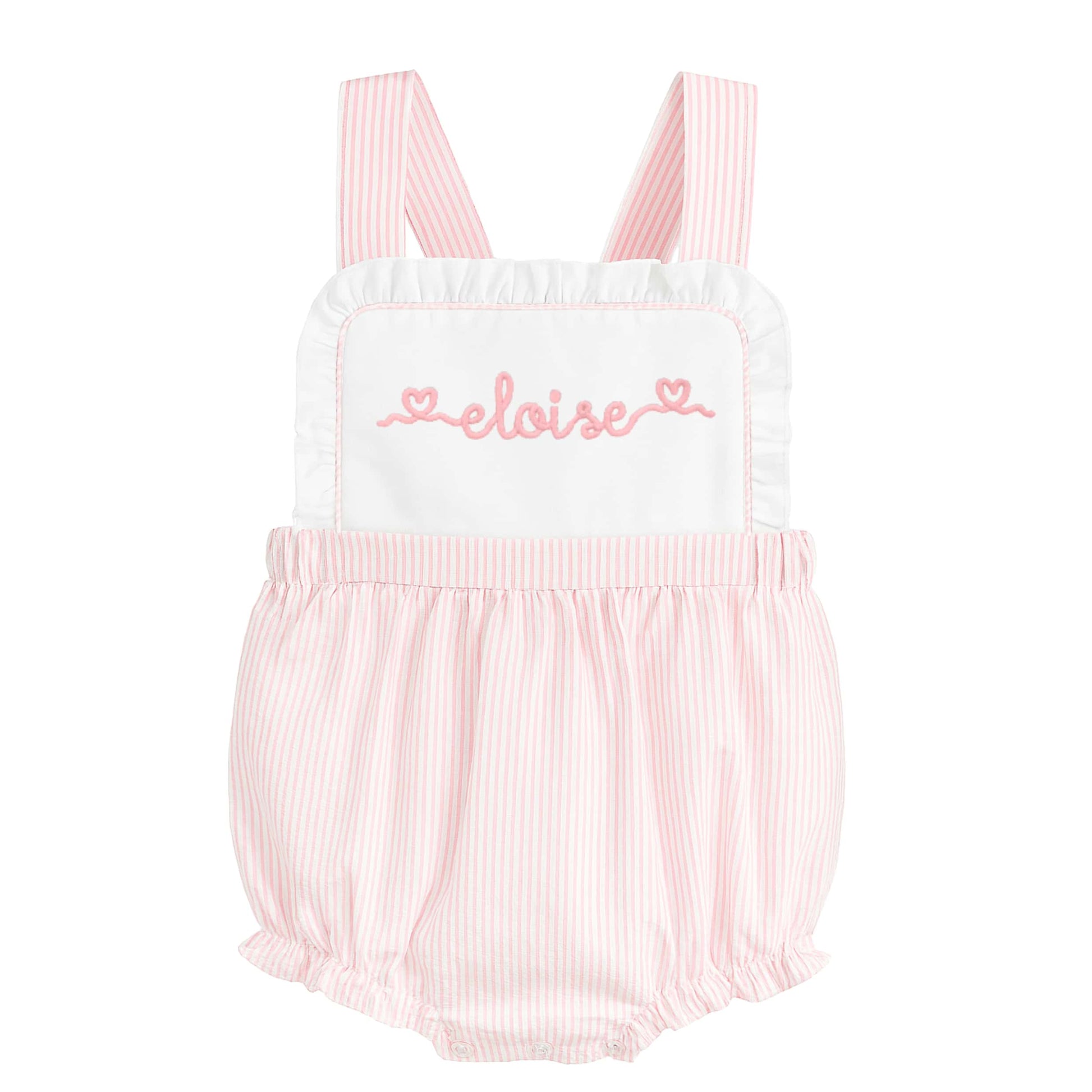 Add a splash of fun to your style with the Pink seersucker bubble featuring a charming name monogram.