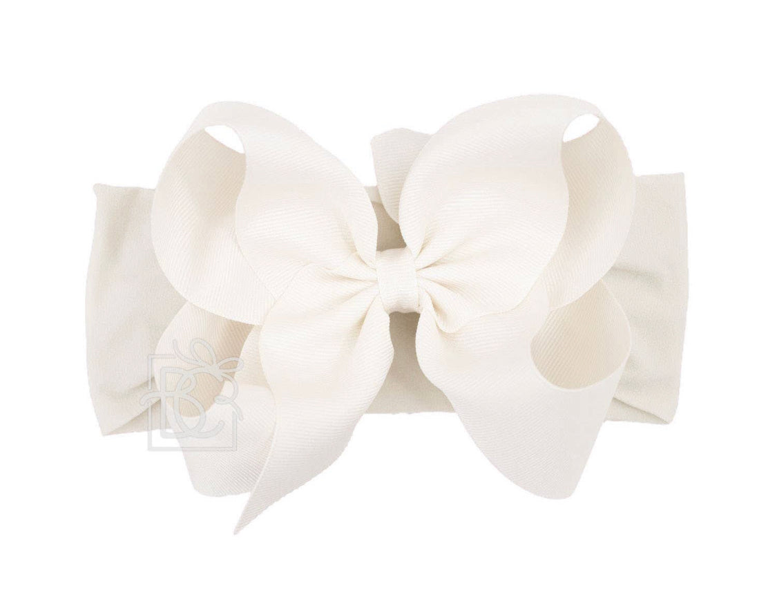 Wide pantyhose headband with extra large 5.5” Grosgain bow