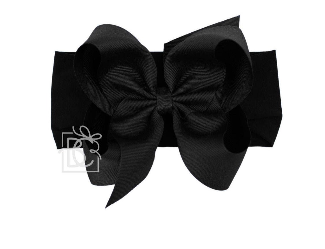 Wide pantyhose headband with extra large 5.5” Grosgain bow
