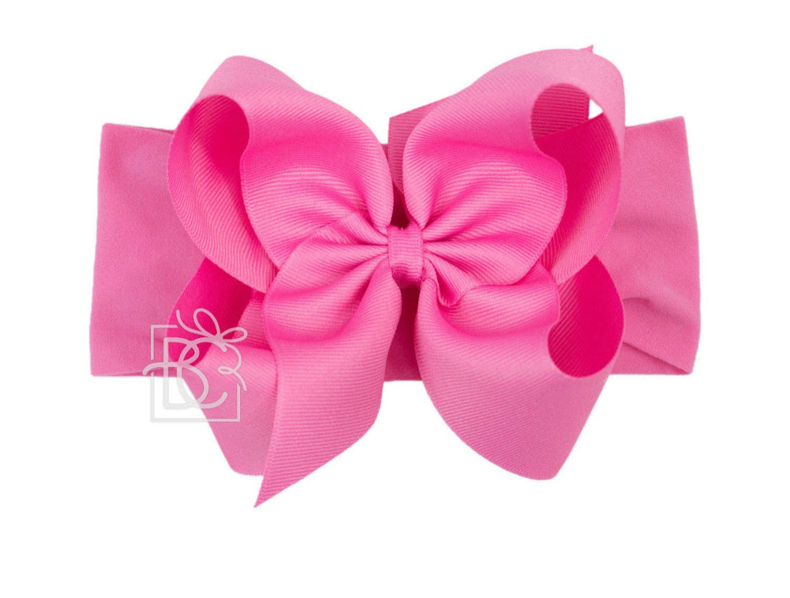 Wide pantyhose headband with extra large 5.5” Grosgain bow