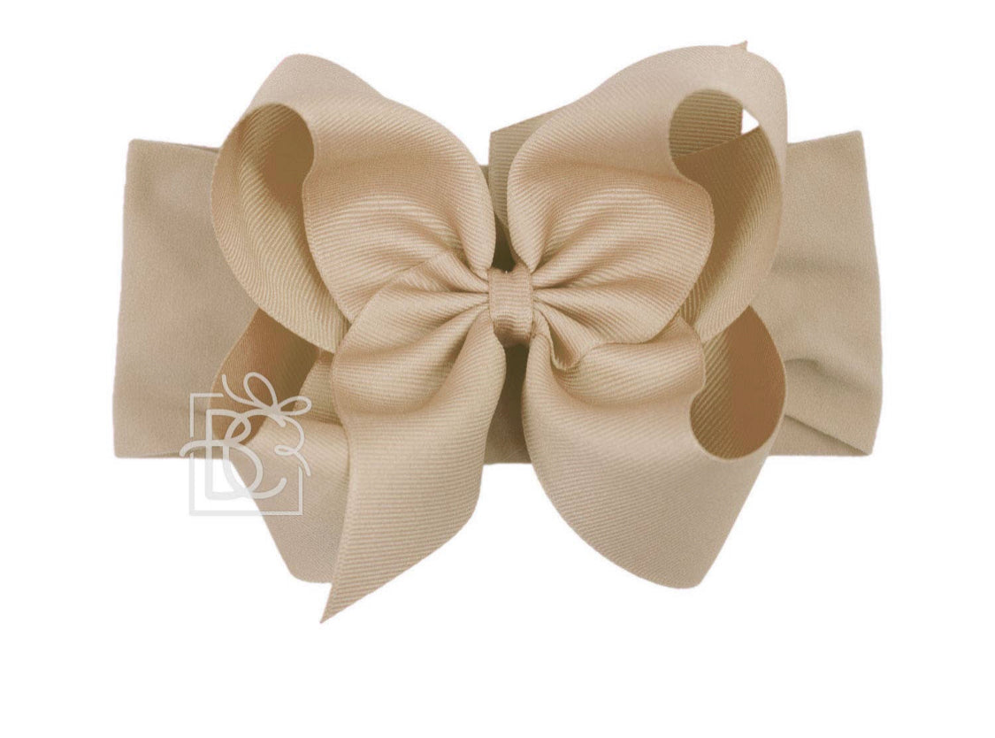 Wide pantyhose headband with extra large 5.5” Grosgain bow