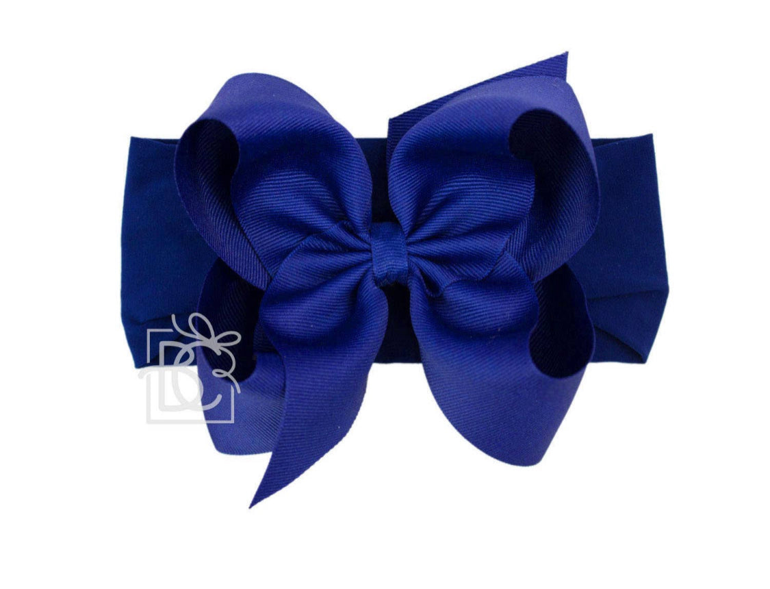 Wide pantyhose headband with extra large 5.5” Grosgain bow